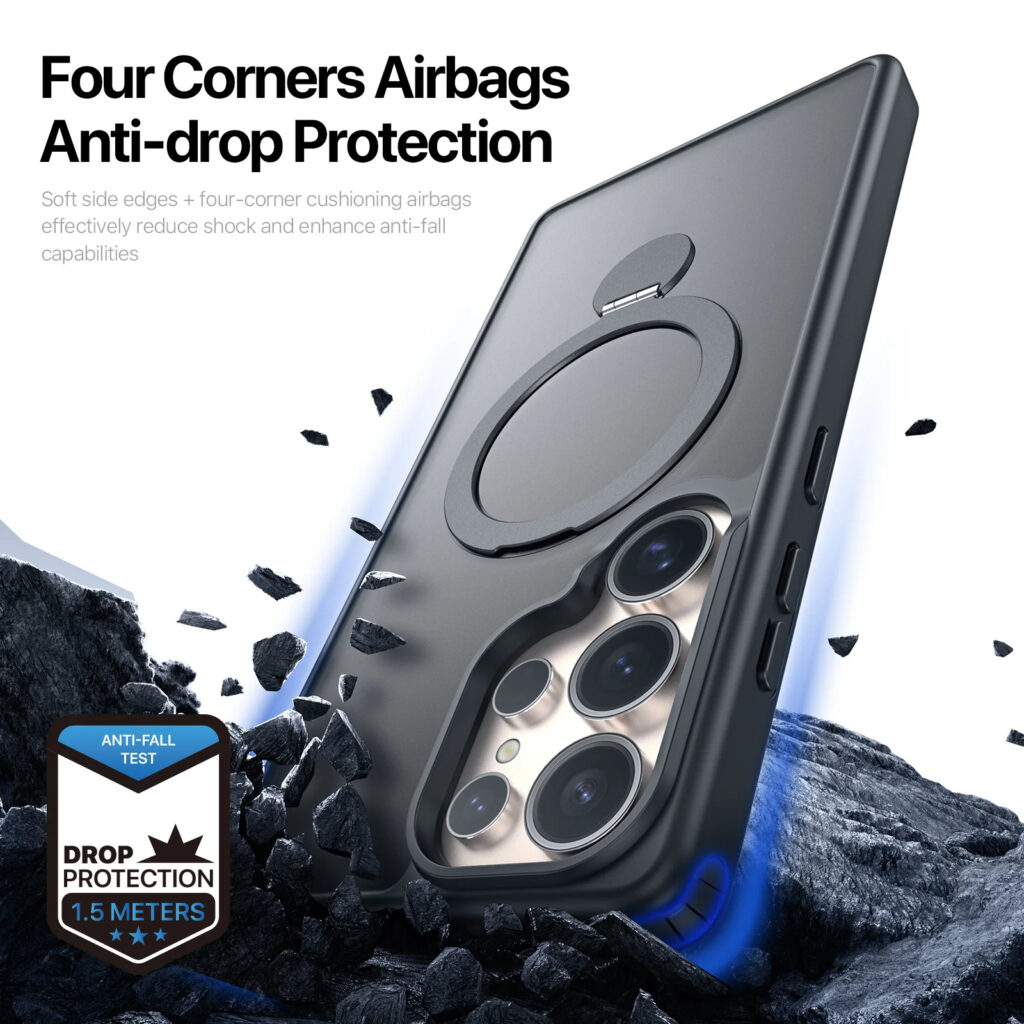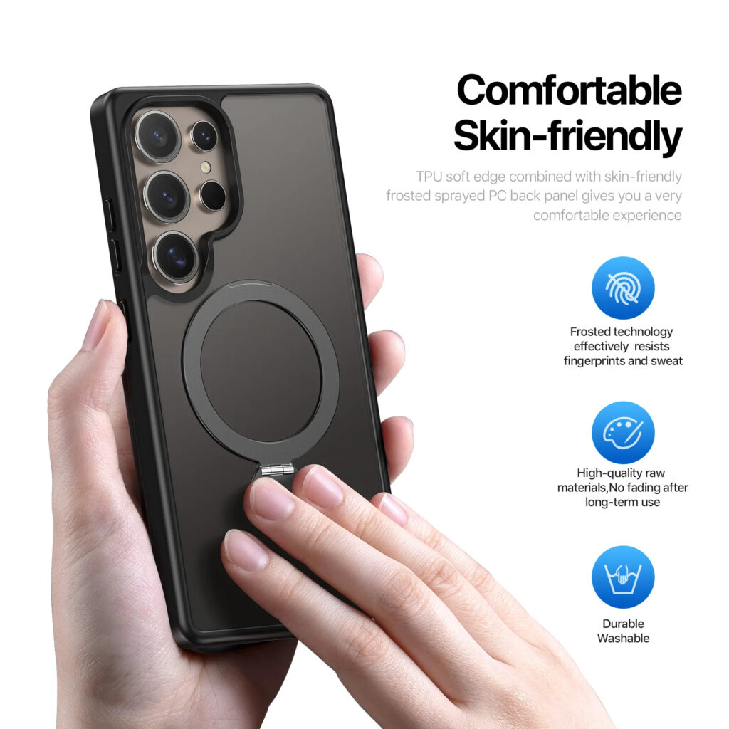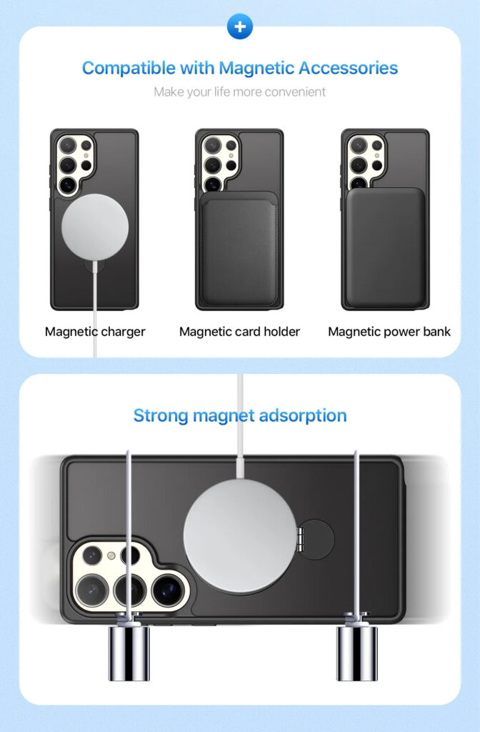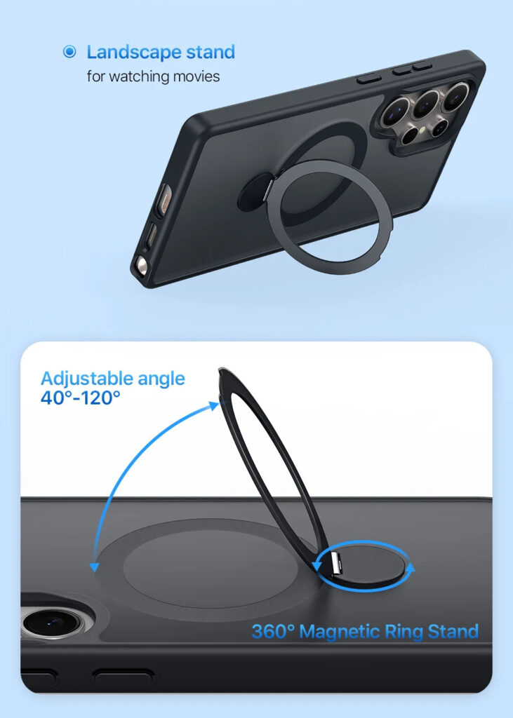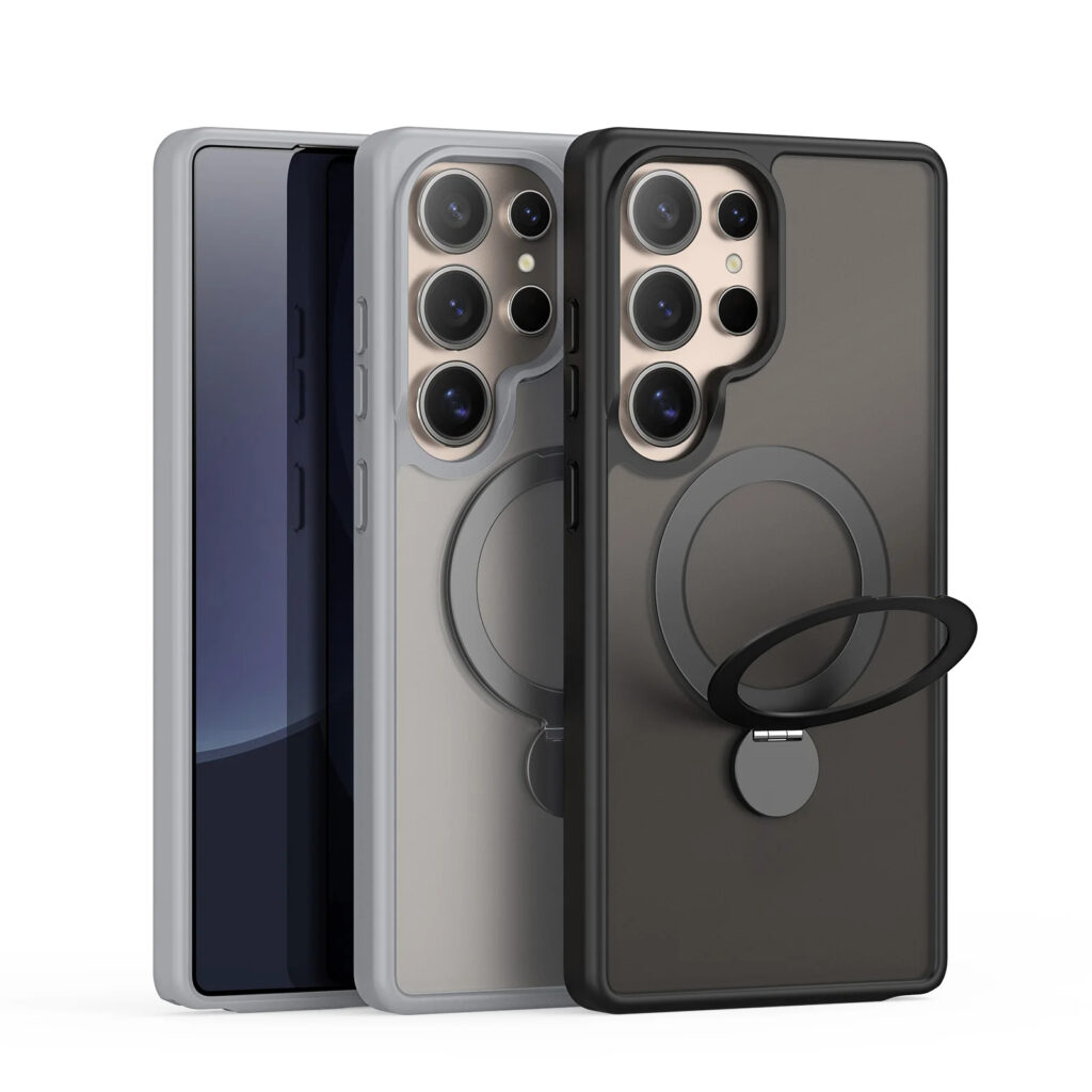 Luxury Premium Magnetic Stand Fold Bracket Ring Wireless Charge Transparent Matte Case Cover For Samsung S Series