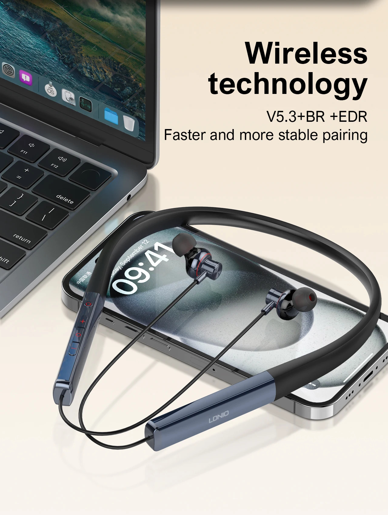 LDNIO Handfree Waterproof Wireless Stereo Headset In-ear Neckband Headphones
