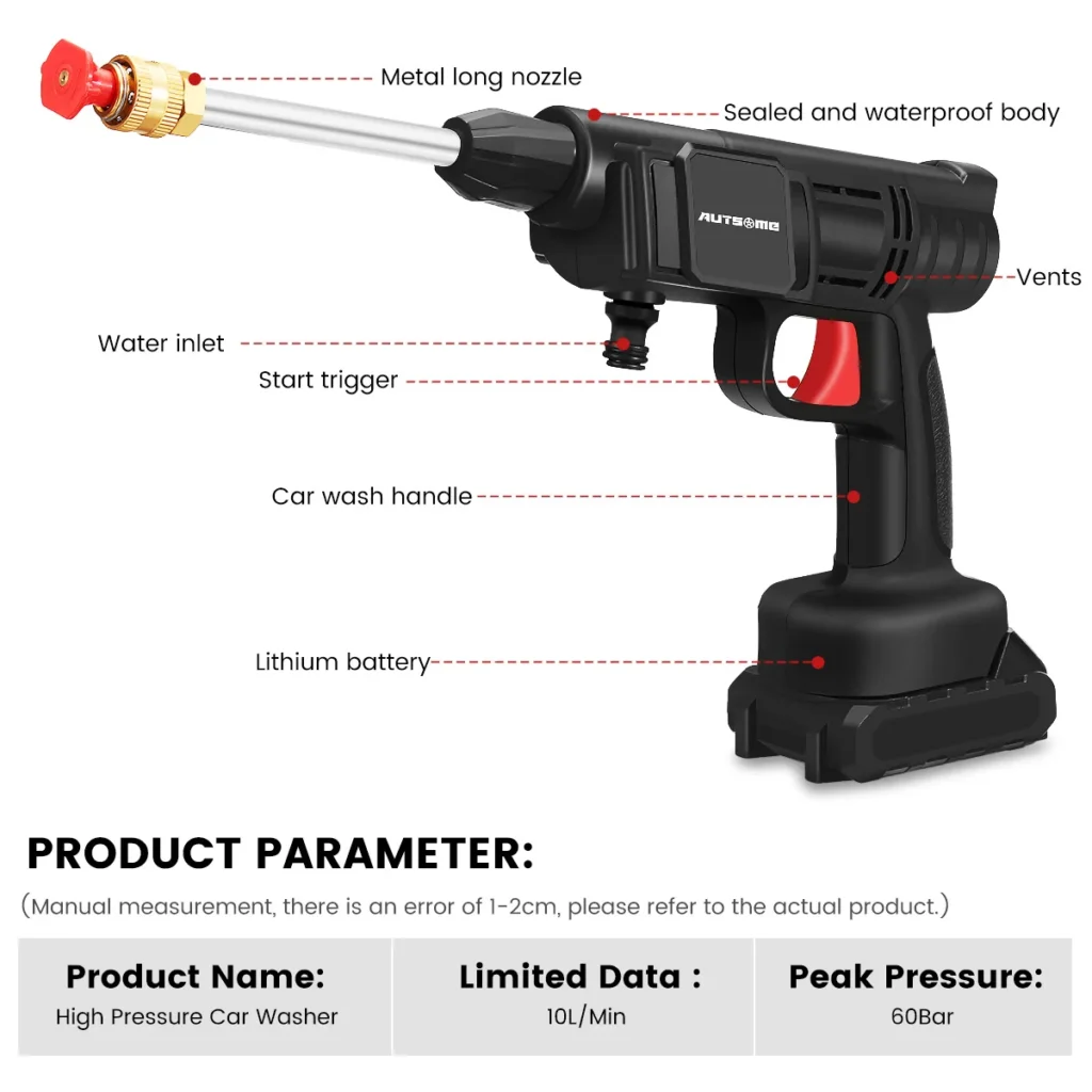 Cordless 24V Electric High Pressure Car Washer | Manual Rechargeable Car-Washing Machine with Adjustable 3-in-1 Nozzle and 5M Hose Pipe for Washing Cars | Watering Flowers | Cleaning Floors